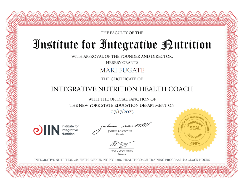 IIN (Institute for Integrative Nutrition) Certified Holistic Health Coach